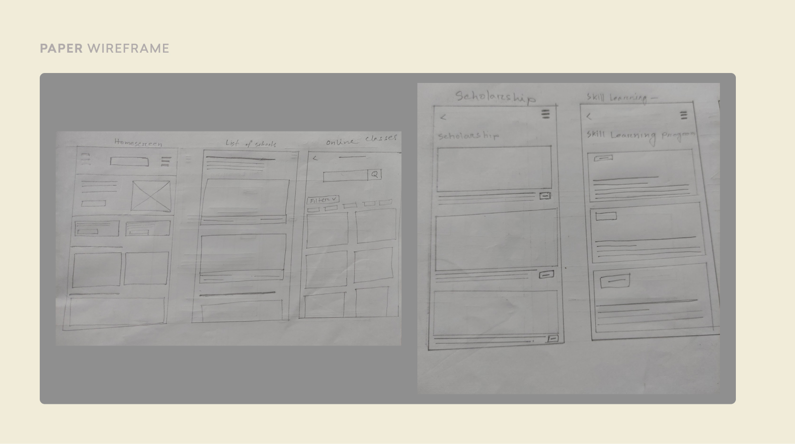 After brainstorming and doing a survey. Based on the data I made my paper wireframes, while making these wireframes I had to keep in mind what will be the main task of the users and how they’d like to complete their task.