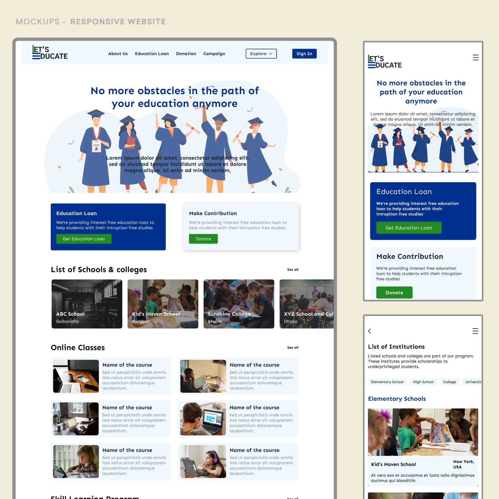 The main objective of the project is to ensure good quality education for people without income or less income. Concept of the project is to design a dedicated mobile app and responsive website.